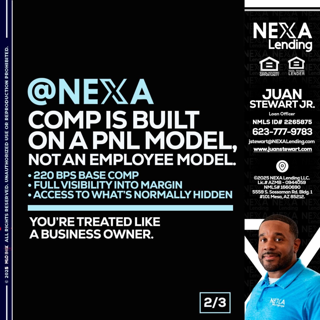 Hi, my name is Juan Stewart JR. I’m a Loan Officer with NEXA Lending LLC., offering personalized mortgage solutions, fast customized quotes, great rates and service with integrity.