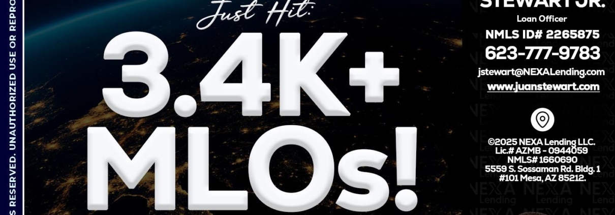 Hi, my name is Juan Stewart JR. I’m a Loan Officer with NEXA Mortgage LLC., offering personalized mortgage solutions, fast customized quotes, great rates and service with integrity.