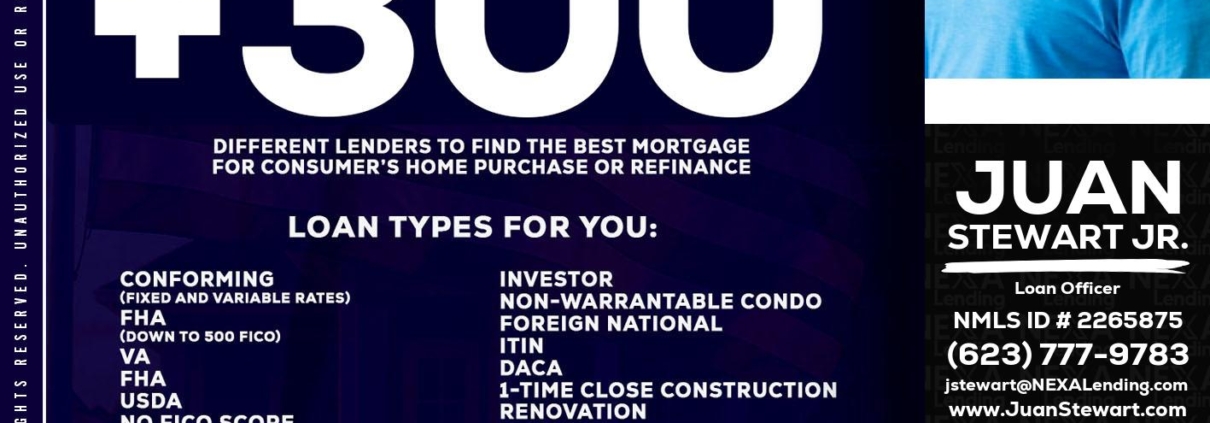 Hi, my name is Juan Stewart JR. I’m a Loan Officer with NEXA Lending LLC., offering personalized mortgage solutions, fast customized quotes, great rates and service with integrity.