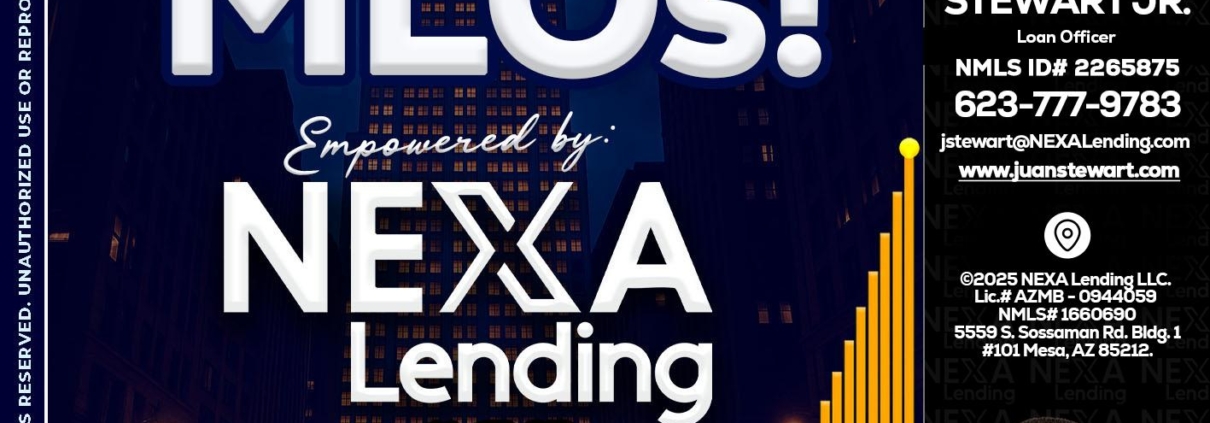 Hi, my name is Juan Stewart JR. I’m a Loan Officer with NEXA Mortgage LLC., offering personalized mortgage solutions, fast customized quotes, great rates and service with integrity.