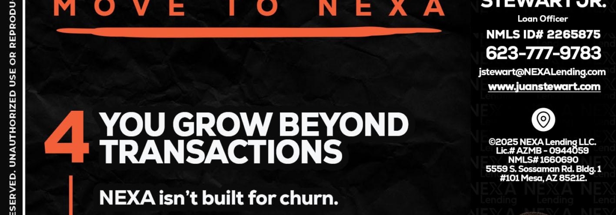 Hi, my name is Juan Stewart JR. I’m a Loan Officer with NEXA Lending LLC., offering personalized mortgage solutions, fast customized quotes, great rates and service with integrity.