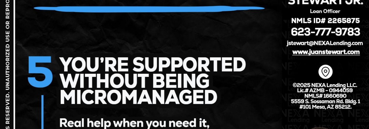Hi, my name is Juan Stewart JR. I’m a Loan Officer with NEXA Lending LLC., offering personalized mortgage solutions, fast customized quotes, great rates and service with integrity.