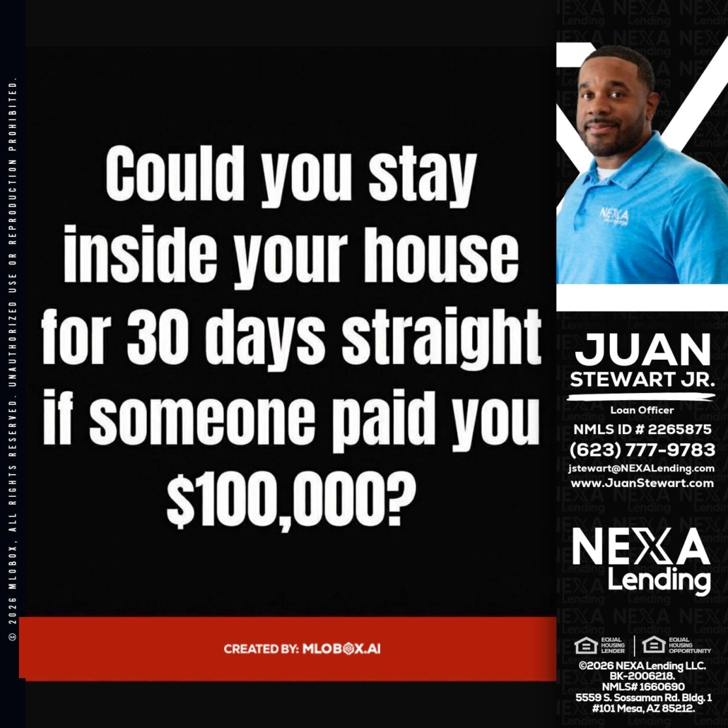 Hi, my name is Juan Stewart JR. I’m a Loan Officer with NEXA Lending LLC., offering personalized mortgage solutions, fast customized quotes, great rates and service with integrity.