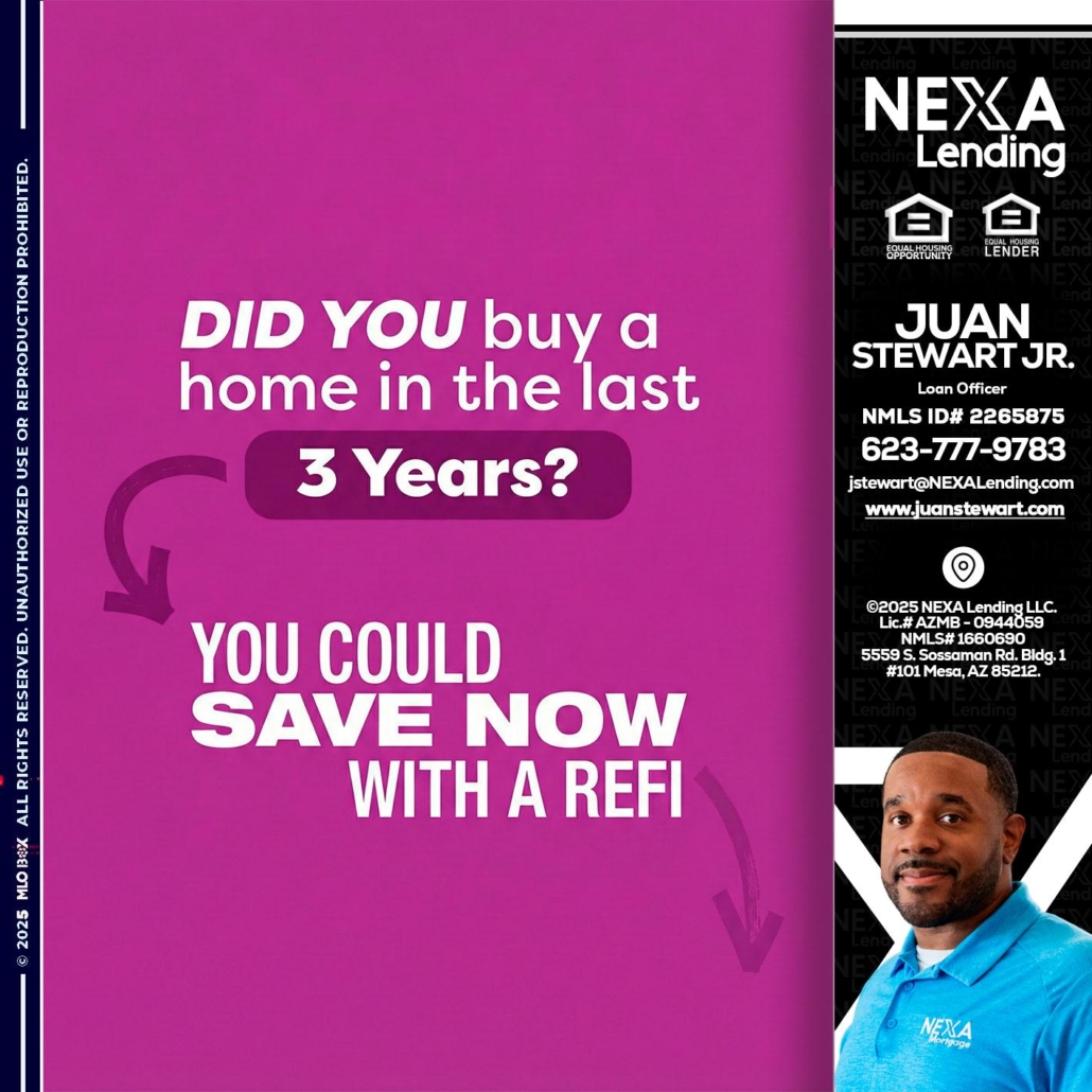 Hi, my name is Juan Stewart JR. I’m a Loan Officer with NEXA Lending LLC., offering personalized mortgage solutions, fast customized quotes, great rates and service with integrity.