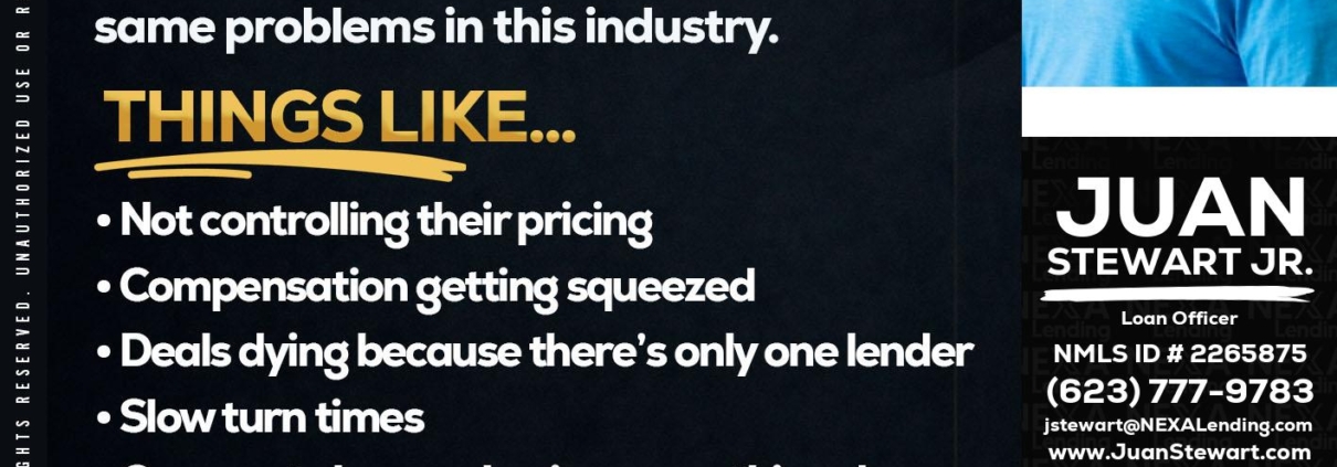 Hi, my name is Juan Stewart JR. I’m a Loan Officer with NEXA Lending LLC., offering personalized mortgage solutions, fast customized quotes, great rates and service with integrity.