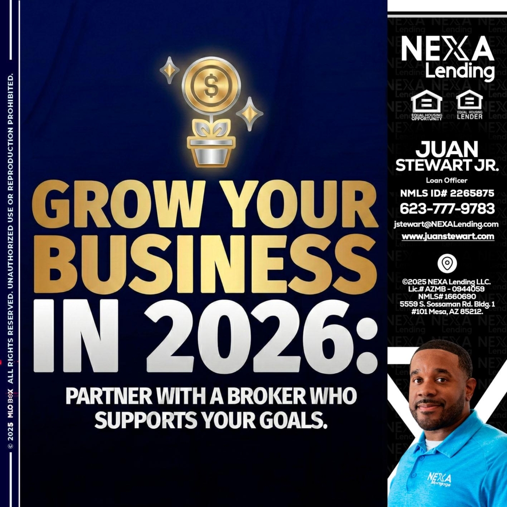 Hi, my name is Juan Stewart JR. I’m a Loan Officer with NEXA Lending LLC., offering personalized mortgage solutions, fast customized quotes, great rates and service with integrity.