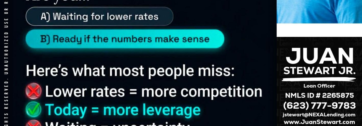 Hi, my name is Juan Stewart JR. I’m a Loan Officer with NEXA Lending LLC., offering personalized mortgage solutions, fast customized quotes, great rates and service with integrity.