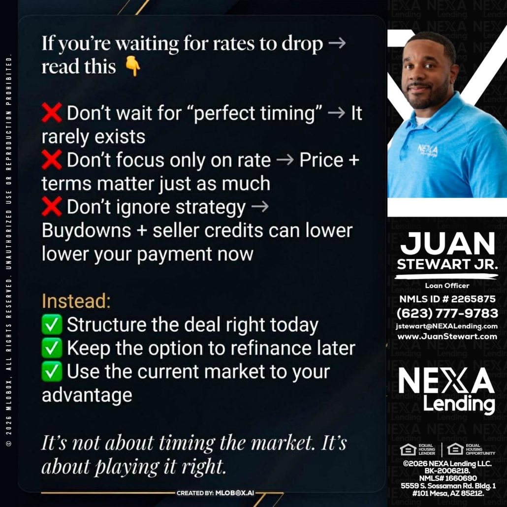 IF YOU ARE - Juan Stewart JR -Mortgage Loan OriginatorHi, my name is Juan Stewart JR. I’m a Loan Officer with NEXA Lending LLC., offering personalized mortgage solutions, fast customized quotes, great rates and service with integrity.
