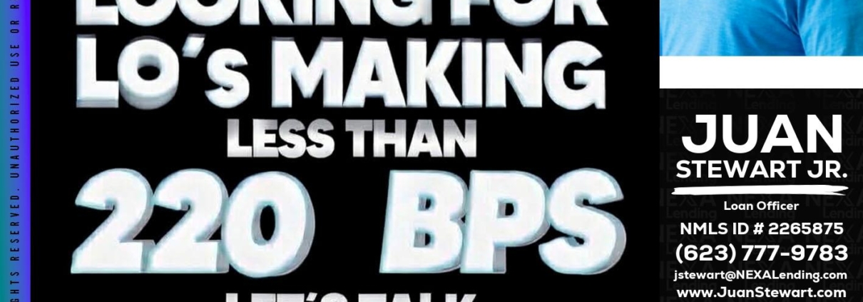 Hi, my name is Juan Stewart JR. I’m a Loan Officer with NEXA Lending LLC., offering personalized mortgage solutions, fast customized quotes, great rates and service with integrity.