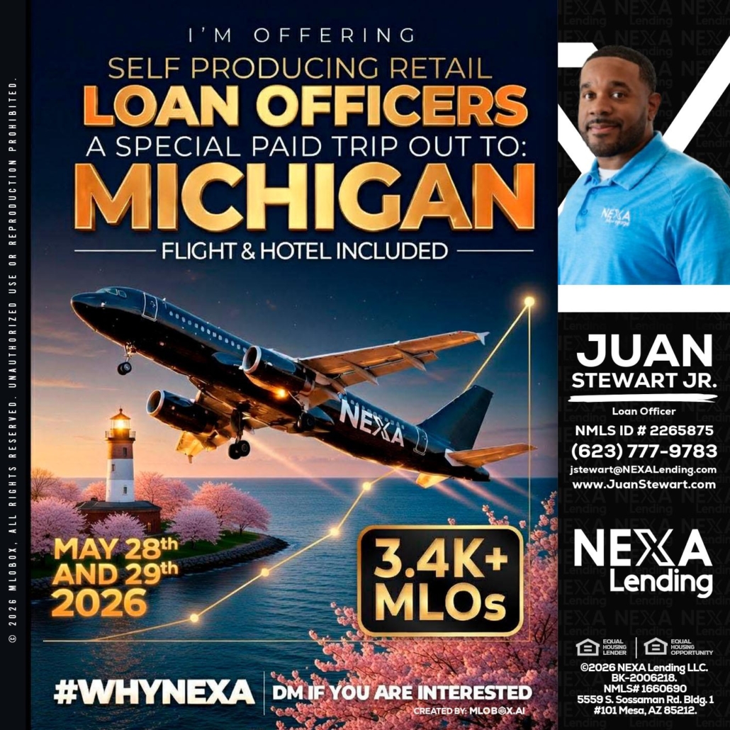 MICHIGAN TRIP - Juan Stewart JR -Mortgage Loan OriginatorHi, my name is Juan Stewart JR. I’m a Loan Officer with NEXA Lending LLC., offering personalized mortgage solutions, fast customized quotes, great rates and service with integrity.