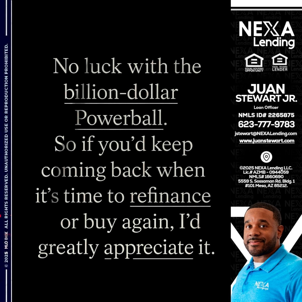 Hi, my name is Juan Stewart JR. I’m a Loan Officer with NEXA Lending LLC., offering personalized mortgage solutions, fast customized quotes, great rates and service with integrity.