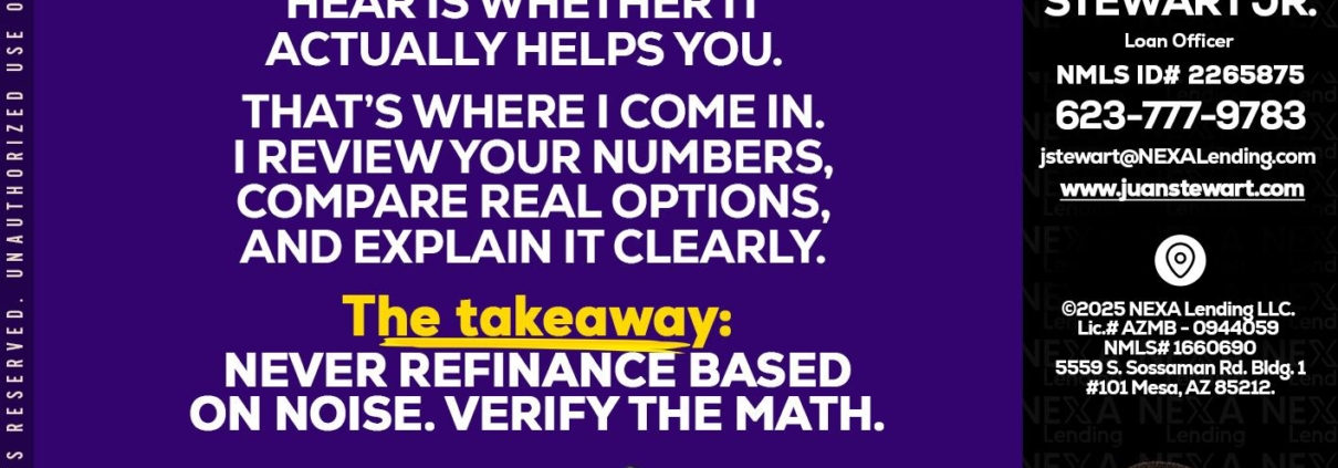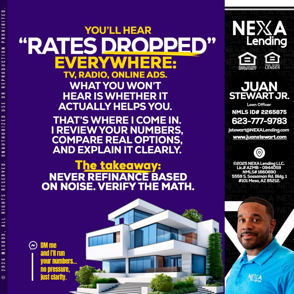 Hi, my name is Juan Stewart JR. I’m a Loan Officer with NEXA Lending LLC., offering personalized mortgage solutions, fast customized quotes, great rates and service with integrity.