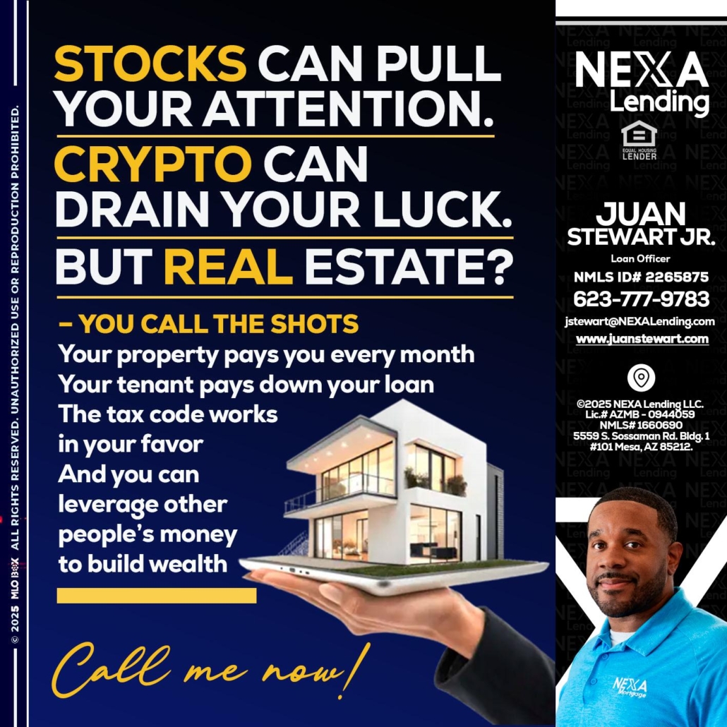 Hi, my name is Juan Stewart JR. I’m a Loan Officer with NEXA Mortgage LLC., offering personalized mortgage solutions, fast customized quotes, great rates and service with integrity.
