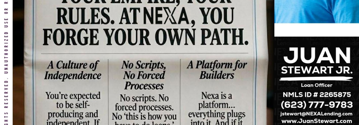 Hi, my name is Juan Stewart JR. I’m a Loan Officer with NEXA Lending LLC., offering personalized mortgage solutions, fast customized quotes, great rates and service with integrity.