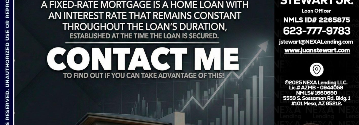 Hi, my name is Juan Stewart JR. I’m a Loan Officer with NEXA Lending LLC., offering personalized mortgage solutions, fast customized quotes, great rates and service with integrity.