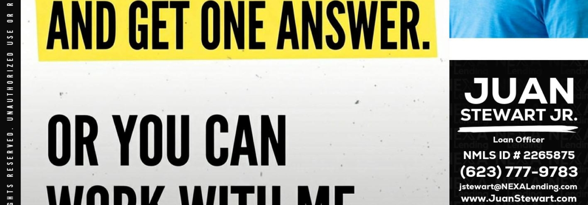 Hi, my name is Juan Stewart JR. I’m a Loan Officer with NEXA Lending LLC., offering personalized mortgage solutions, fast customized quotes, great rates and service with integrity.